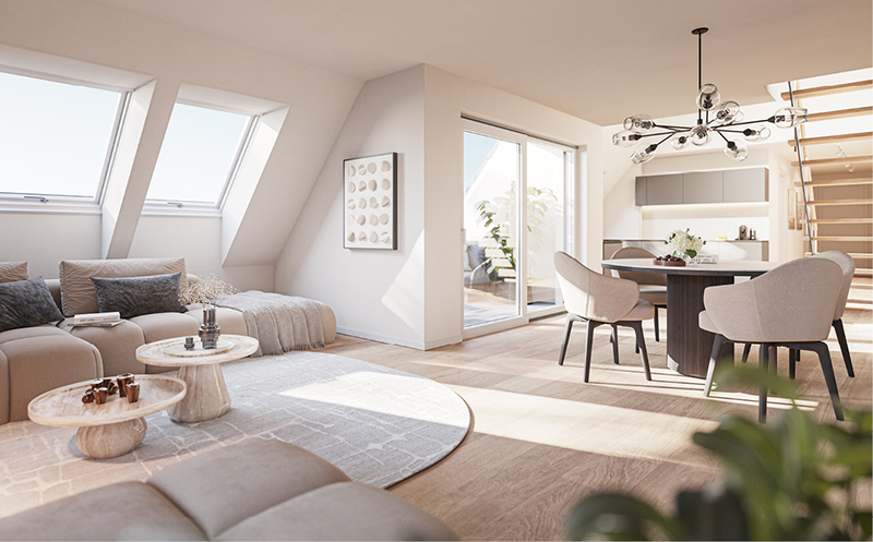 Die Architektur überzeugt durch klare Linien, hochwertige Materialien und zeitgemäße Akzente. In vier stilvollen Häusern mit ganz unterschiedlichem Charakter realisieren wir für Sie individuelle Eigentumswohnungen für jede Lebenssituation. Großzügige Grundrisse, lichtdurchflutete Räume und gut durchdachte Aufteilungen schaffen ein harmonisches Wohngefühl. Ob Erdgeschosswohnung mit privatem Gartenanteil, exklusives Loft mit offener Galerie oder großzügige Maisonette – jede Einheit vereint Komfort und Individualität.
