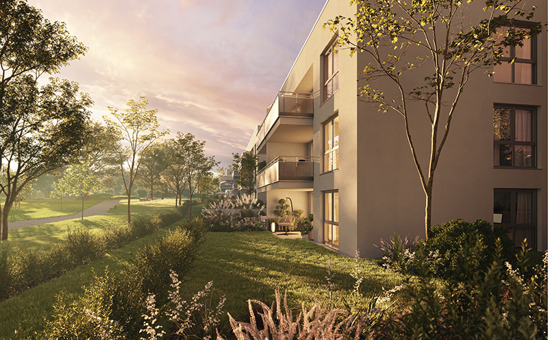 In privilegierter Lage direkt am Park entstehen vier stilvolle Häuser mit 41 Eigentumswohnungen, die den Blick in eine einmalig schöne Parklandschaft öffnen.
