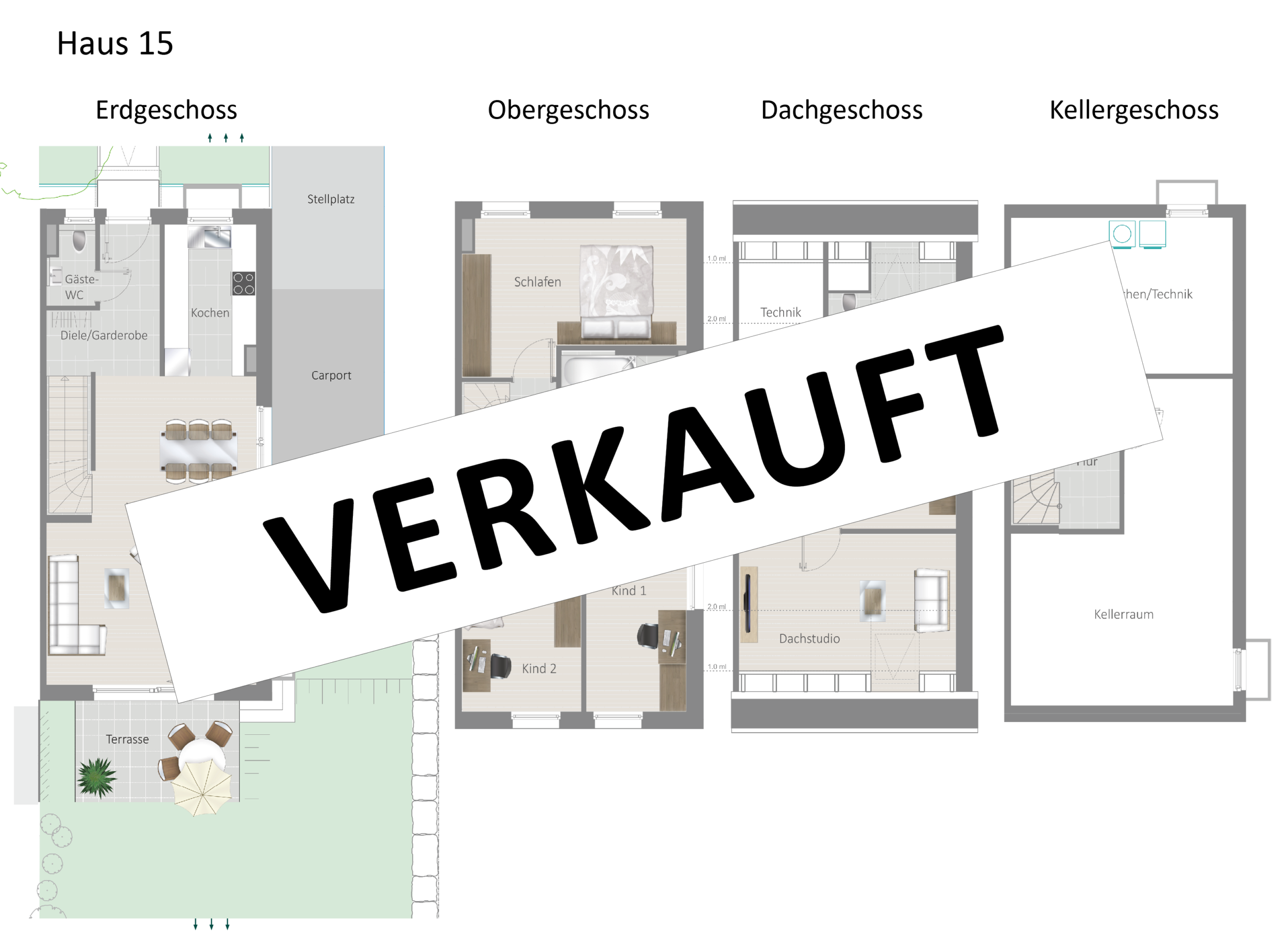 Ideal für Teenager: Zusätzlich kleine Wohnung im Untergeschoss mit großen Fenstern mit Schlafraum oder Gästezimmer, Hobbyraum, Abstellraum und Dusche/WC mit Waschmaschinenanschluss. Tiefgaragenstellplatz optional.