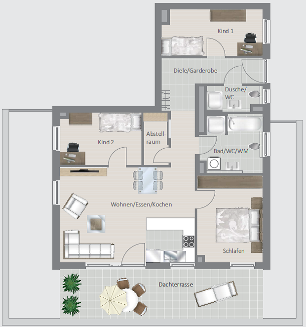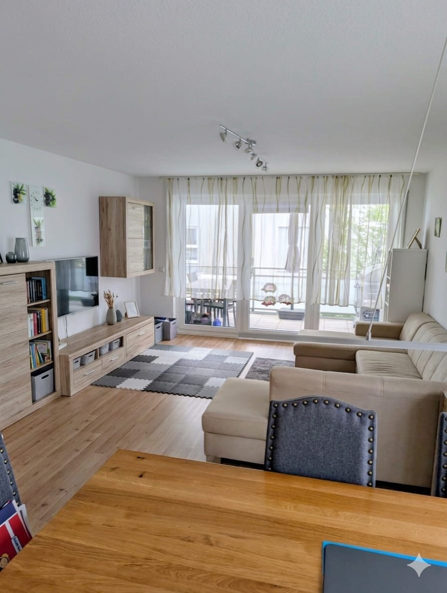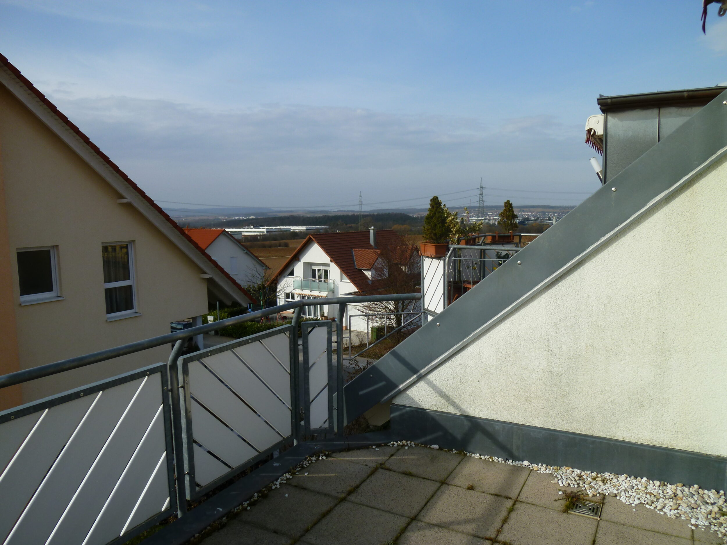 Der großzügige Wohnbereich mit offener Küche und schöner Dachterrasse mit Blick auf die Altstadt Besigheims bildet das Herzstück der Wohnung.