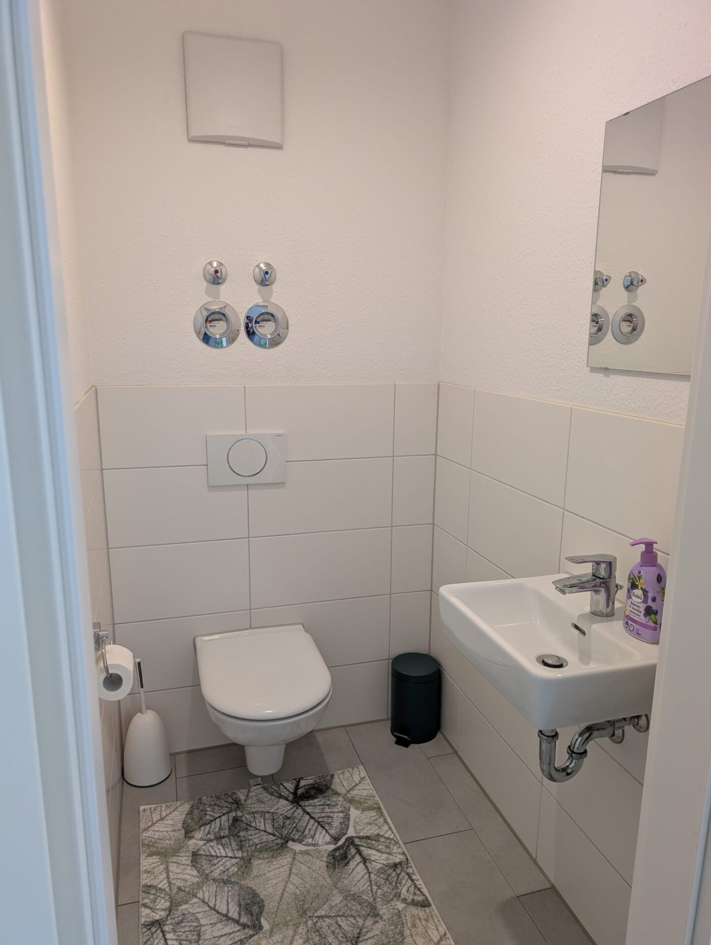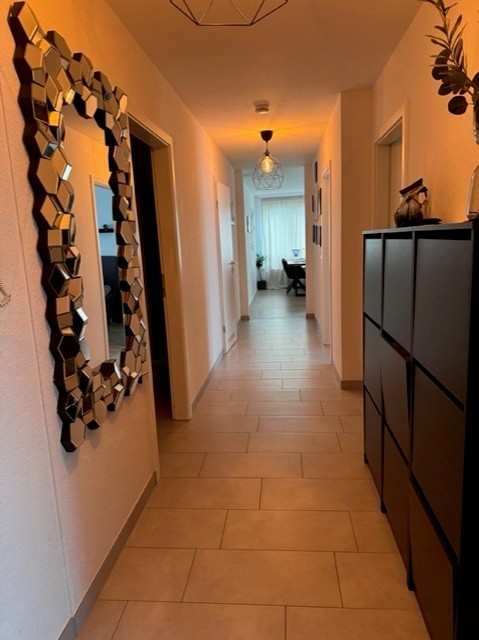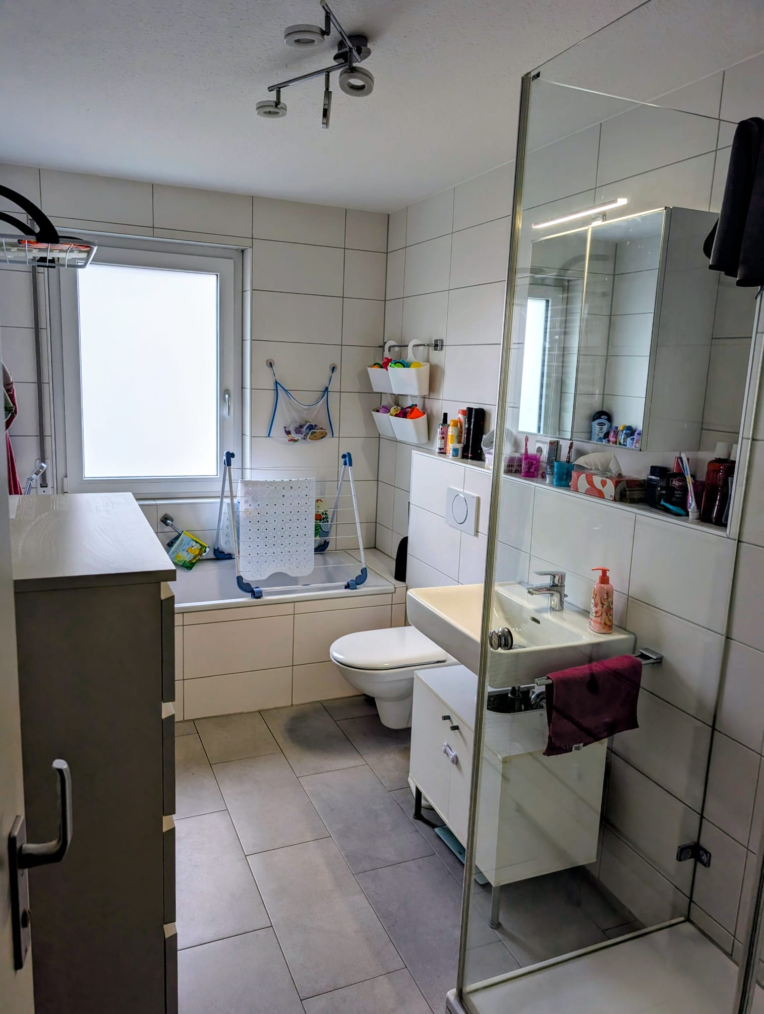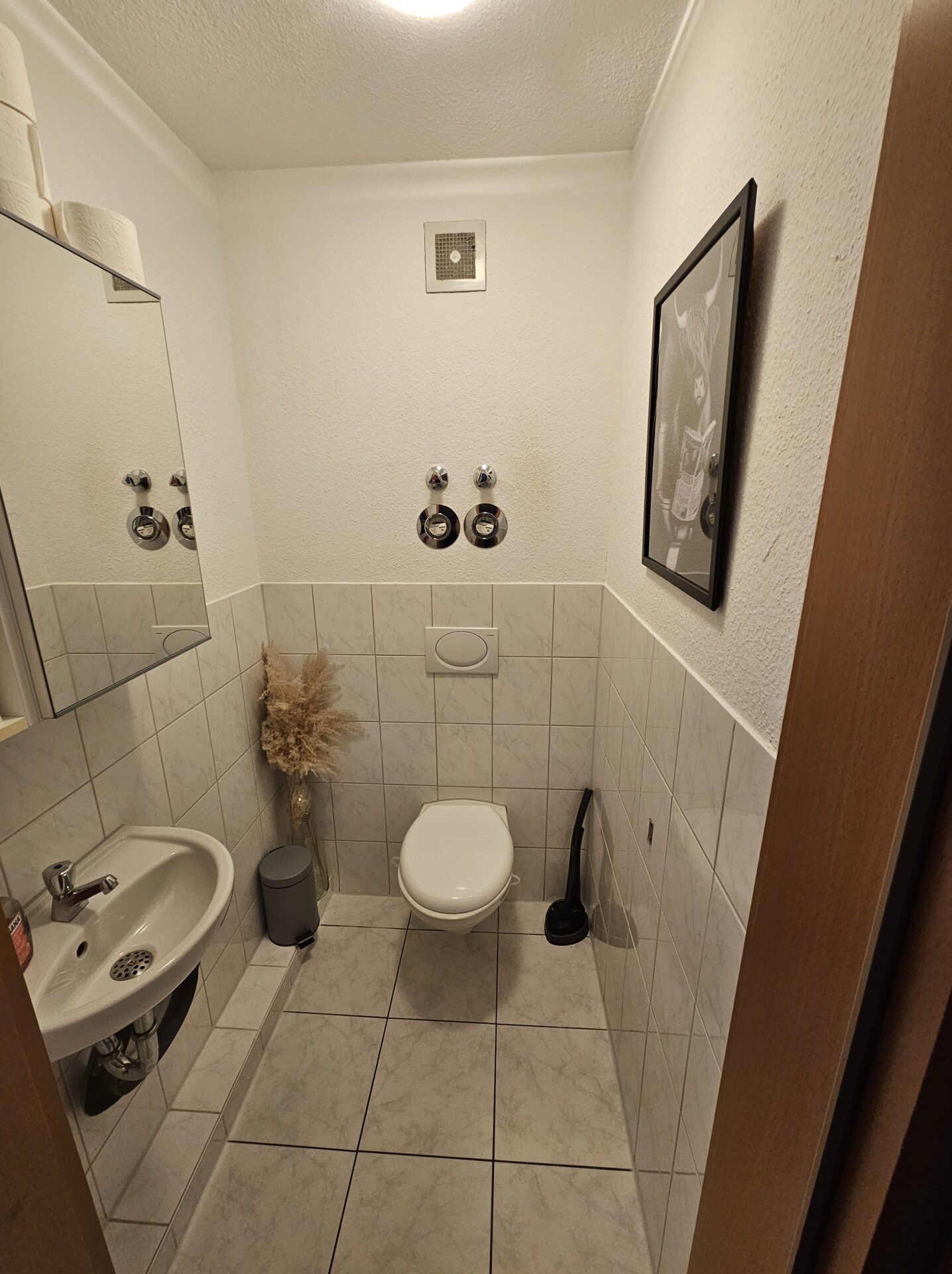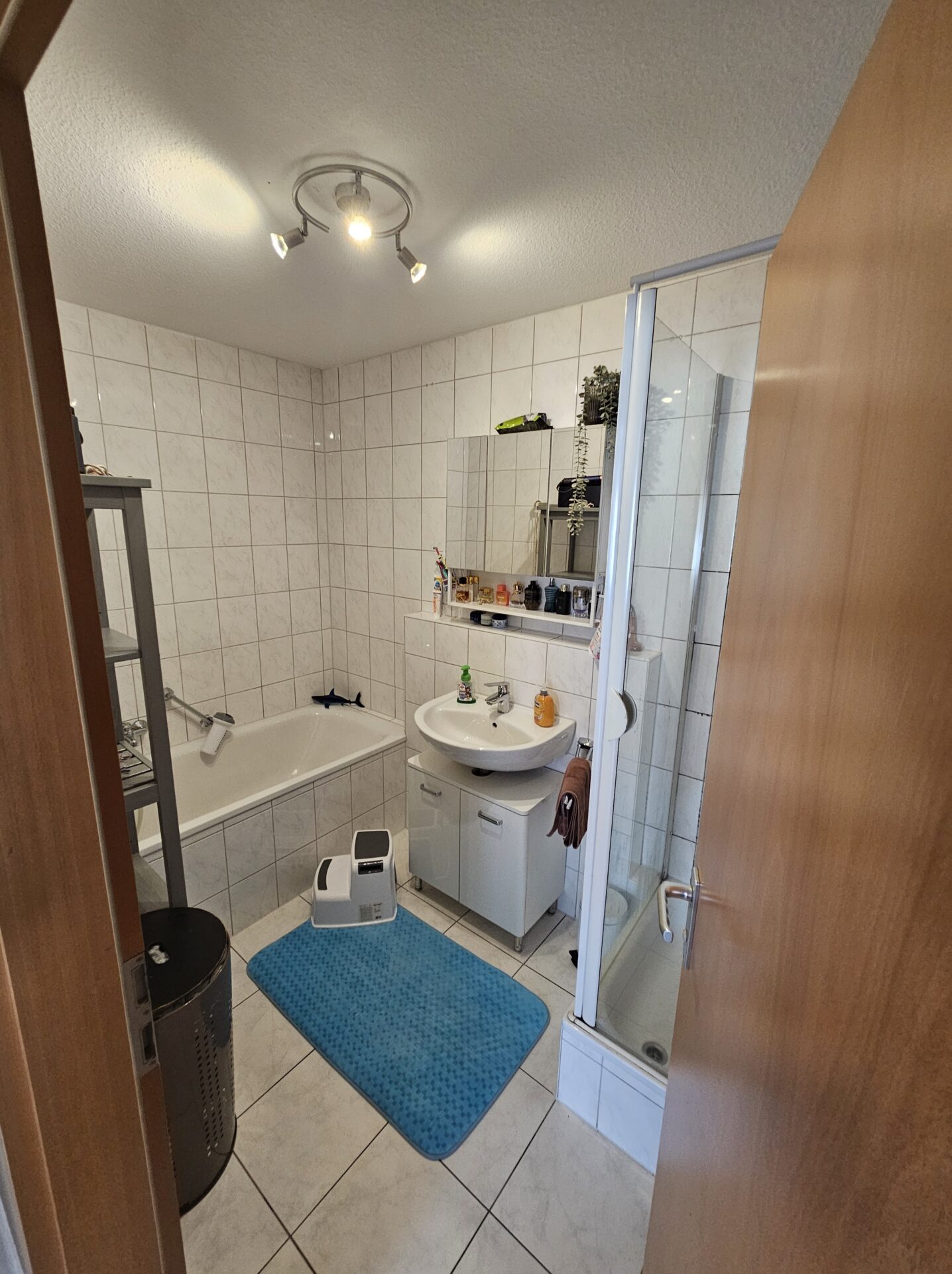 Ca. 95,42 m² Wohnfläche, großes Bad mit Badewanne und Dusche mit hochwertiger Glasduschkabine. Zusätzliches Gäste-WC. Abstellraum in der Wohnung und eigenem Kellerraum im UG.