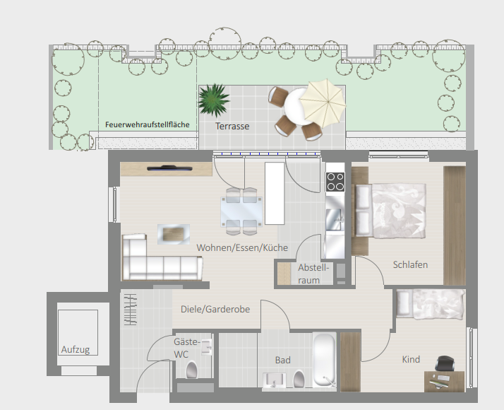 Wir bieten komfortable Mietwohnungen mit Hausmeisterservice und Tiefgaragenstellplätzen, zum großen Teil mit Aufzug.