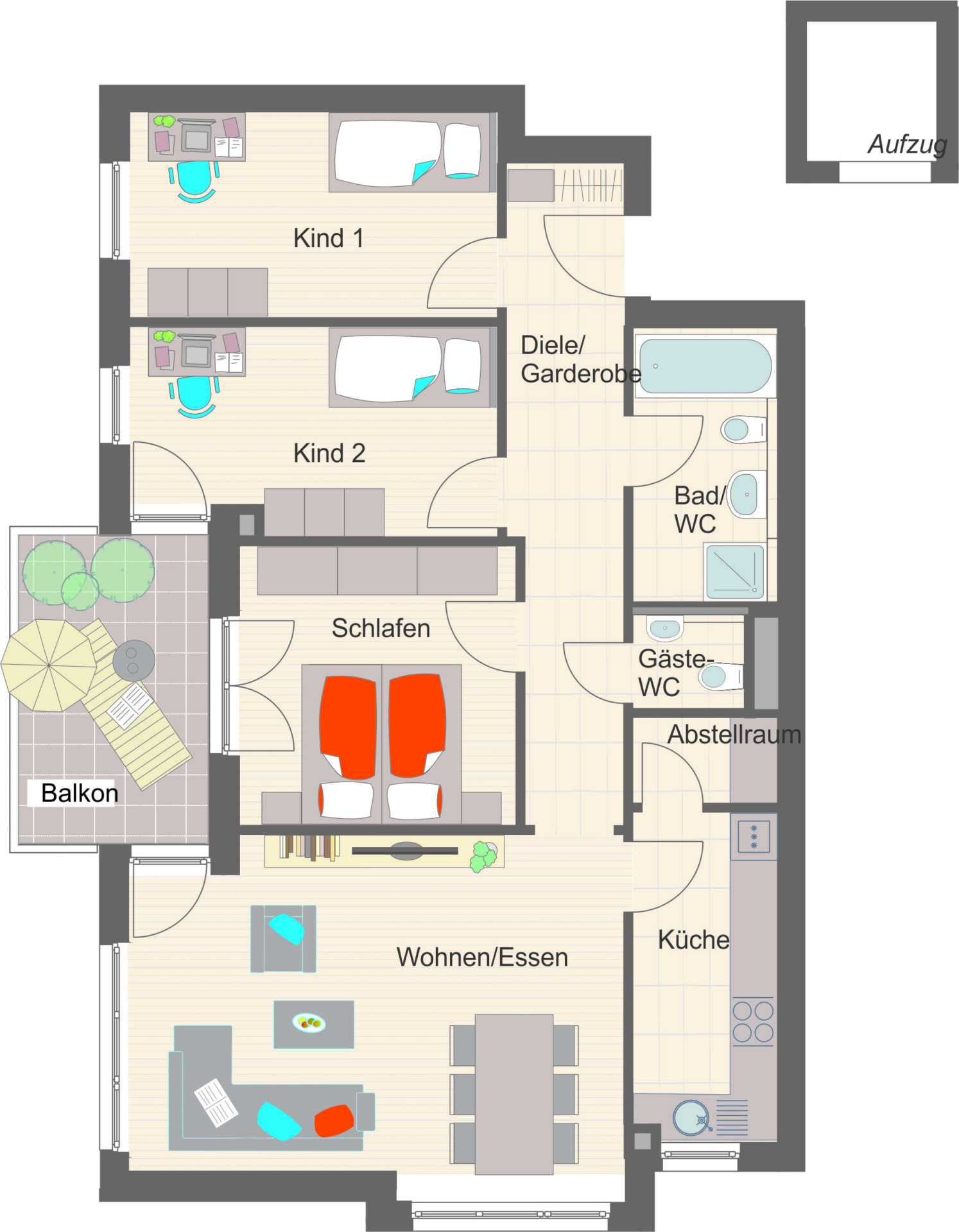 Schöne 4,5 Zimmer Wohnung mit Hobbybühne und gemütlichem Balkon