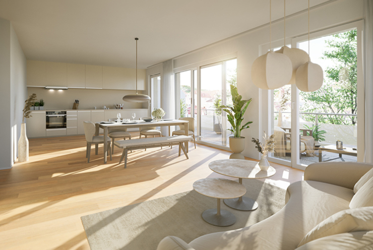 Wohnraum für die Zukunft Unsere Gebäude verbinden Ästhetik mit Nachhaltigkeit. Dank smarter Grundrisse, hochwertiger Materialien, lichtdurchfluteter Räume und energieeffizienter Bauweise genießen Sie höchste Lebensqualität. Alle Wohnungen sind barrierearm gestaltet.